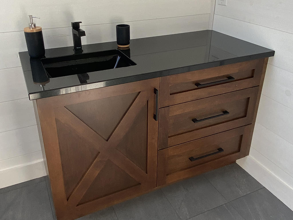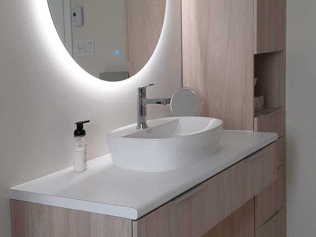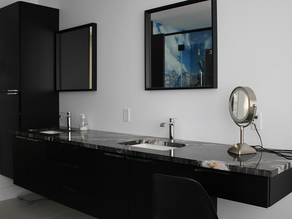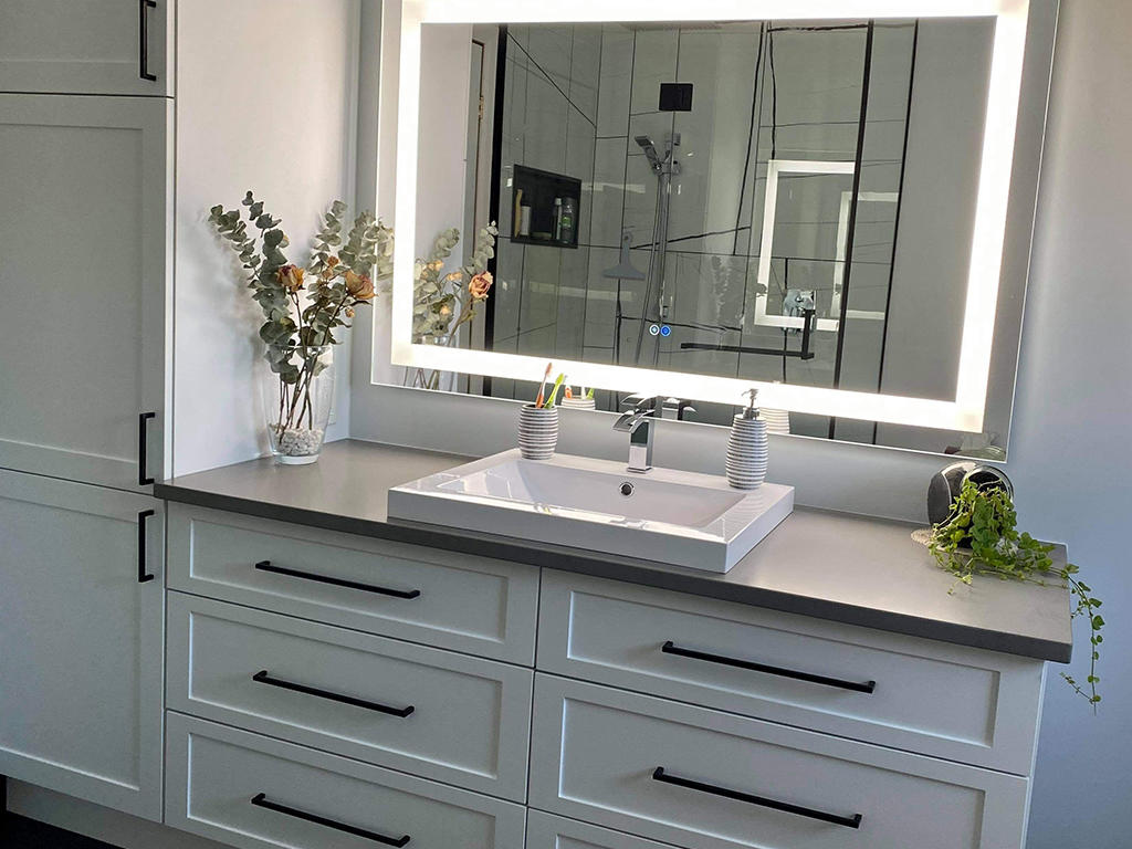 Planifiez un rendez-vous avec notre équipe dès maintenant pour obtenir une soumission pour vos armoires de salles de bain, vos comptoirs et autres mobiliers sur mesure. Nous nous occuperons de tout, de la conception à la finition, pour vous offrir un design unique et des créations à un prix compétitif. Faites confiance à Armoires St-Élie pour concrétiser vos projets de salle de bain!